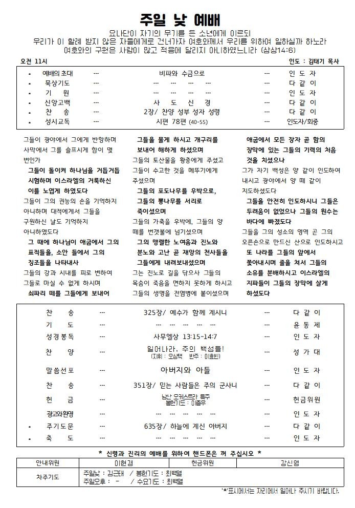 주일 오후 2시